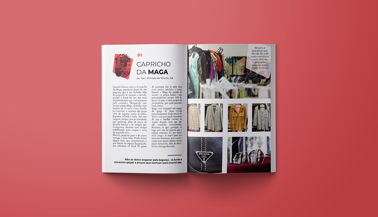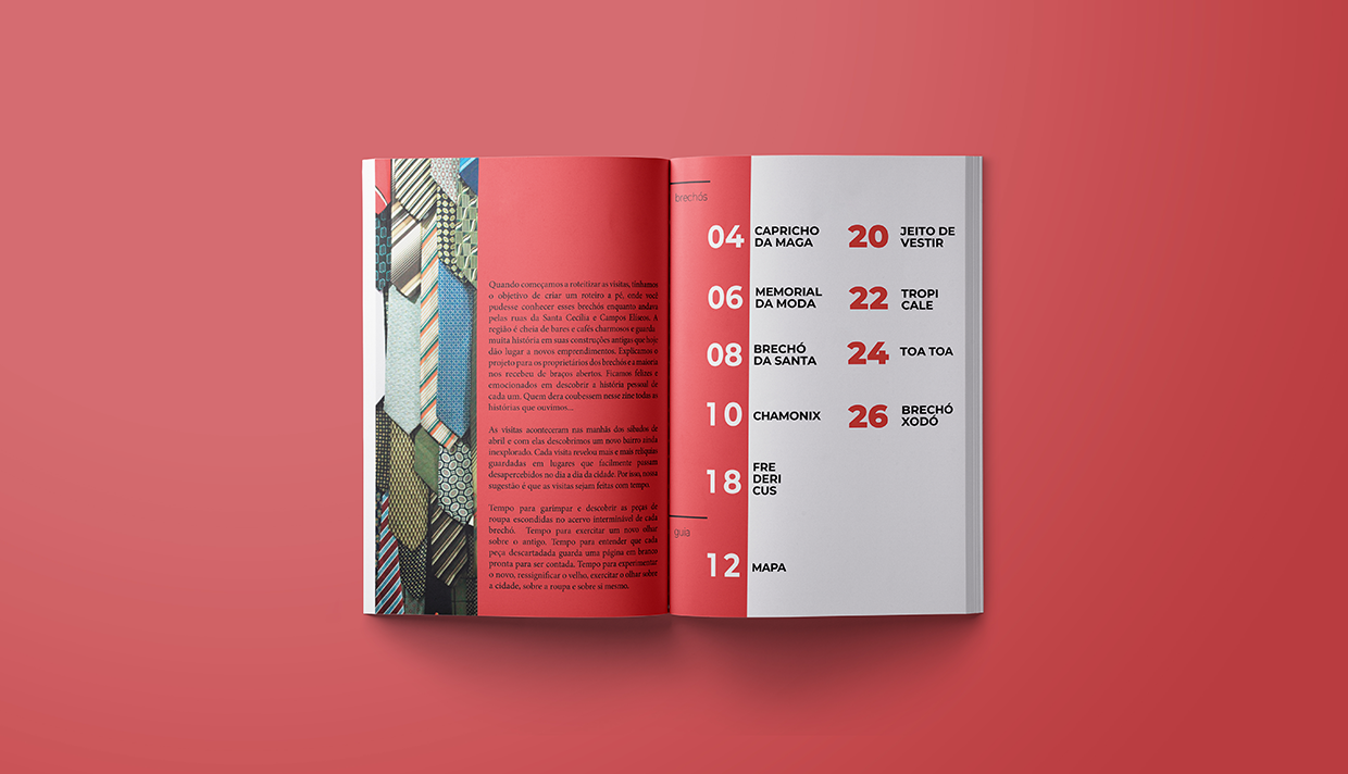 zine desenvolvido como projeto de tcc do curso de comunicação visual, com o objetivo de mapear e criar um guia dos brechós de são paulo